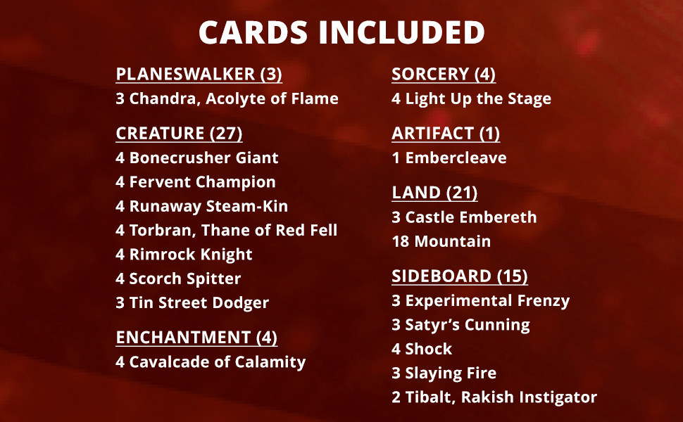 - Apúrese, toma el control de la tabla con tus criaturas, luego enciéndelas hasta que sean imparables. La cubierta Cavalcade Charge Challenger tiene todas las herramientas que necesitas para abrumar a tus oponentes.